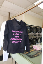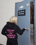 The Dolled Up Essentials Hoodie in black is your go-to statement of cozy luxury and bold confidence. Crafted from premium heavyweight fleece, it features the signature Dolled Up Boutique logo on the front in hot pink and the iconic quote on the back —