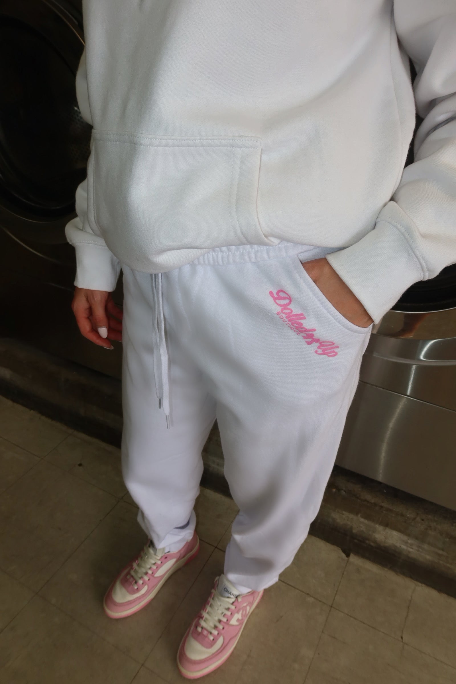 Your off-duty days just got dolled up. The Dolled Up Essentials Sweatpants are crafted from luxe heavyweight fleece for that perfect mix of comfort and glam. Featuring the Dolled Up Boutique logo in pink embroidery near the pocket, these sweats give cozy girl energy with a polished twist. Designed with a relaxed fit and adjustable drawstring waist — they pair flawlessly with the Dolled Up Essentials Hoodie for the full statement set.