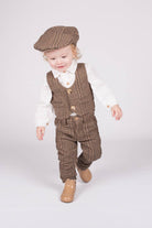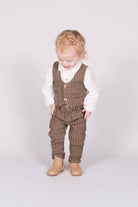 This country check waistcoat set, including a matching hat. Crafted with extra-special finishing touches, this set is a charming addition to any young gentleman's wardrobe.