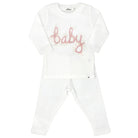 Two-piece baby outfit with “baby” embroidery in blush pink