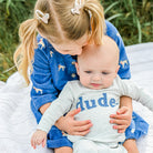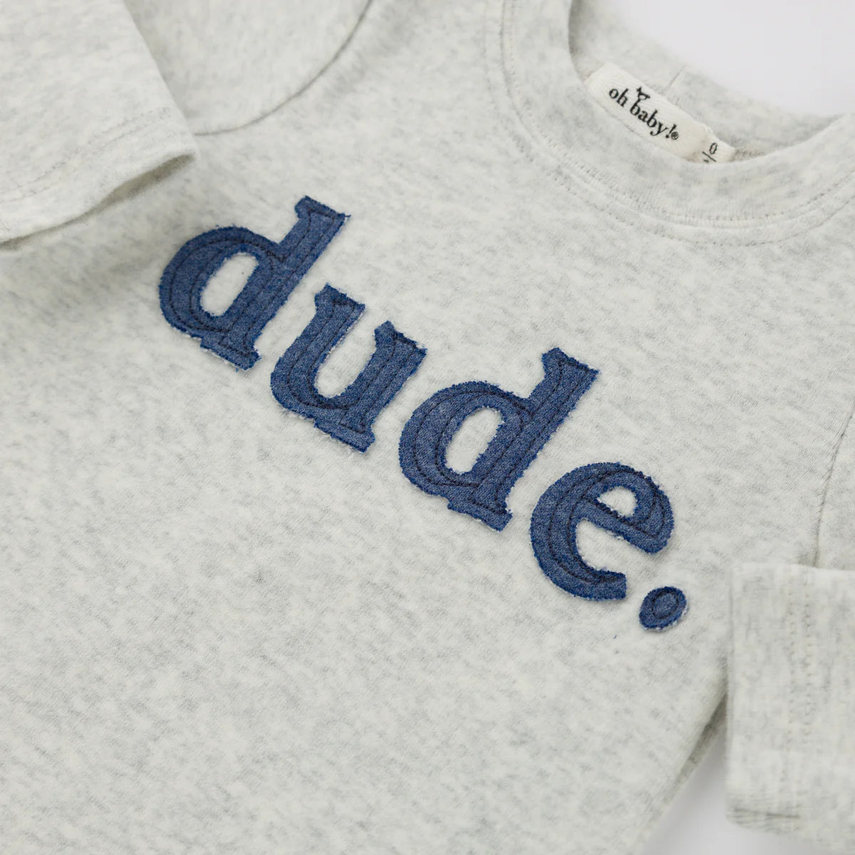 Appliqued "dude" on a soft cotton long sleeve tee with matching pants. Designed in Minnesota. Available in infant sizes.