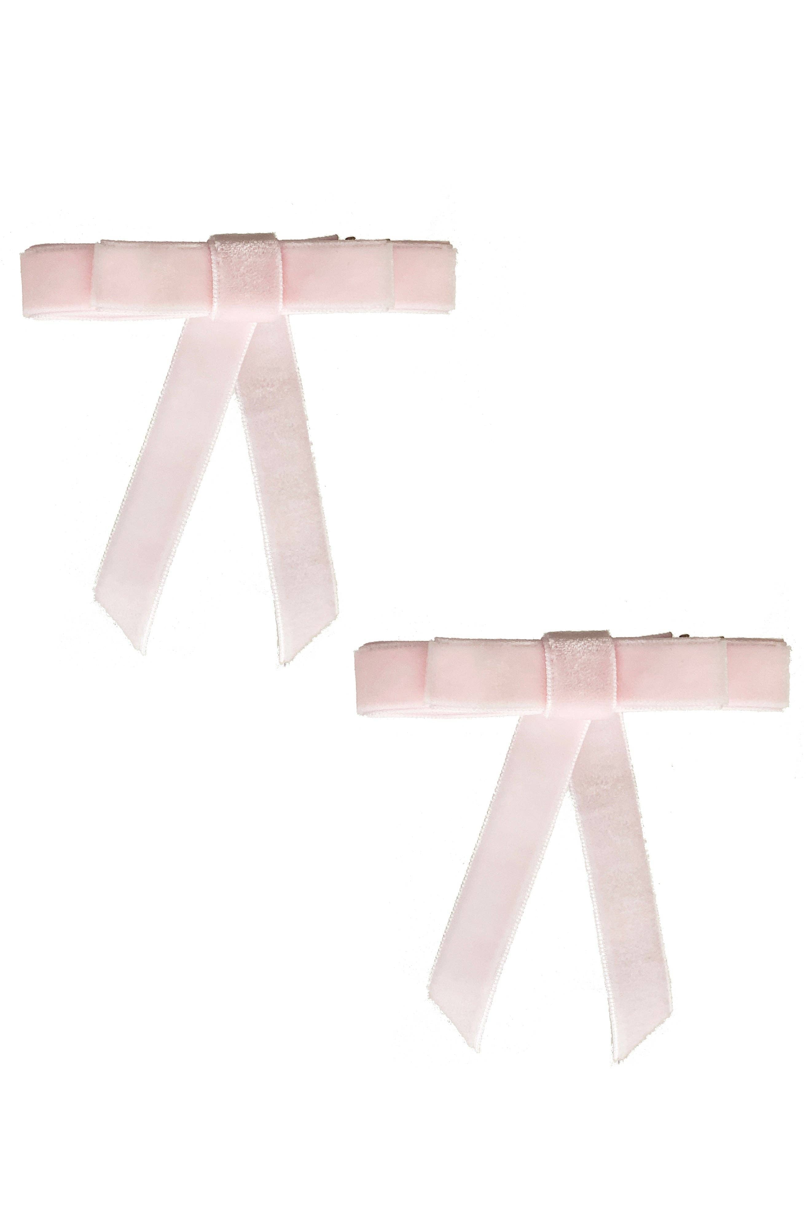 Velvet Bow Clip Set (2) - Baby Pink