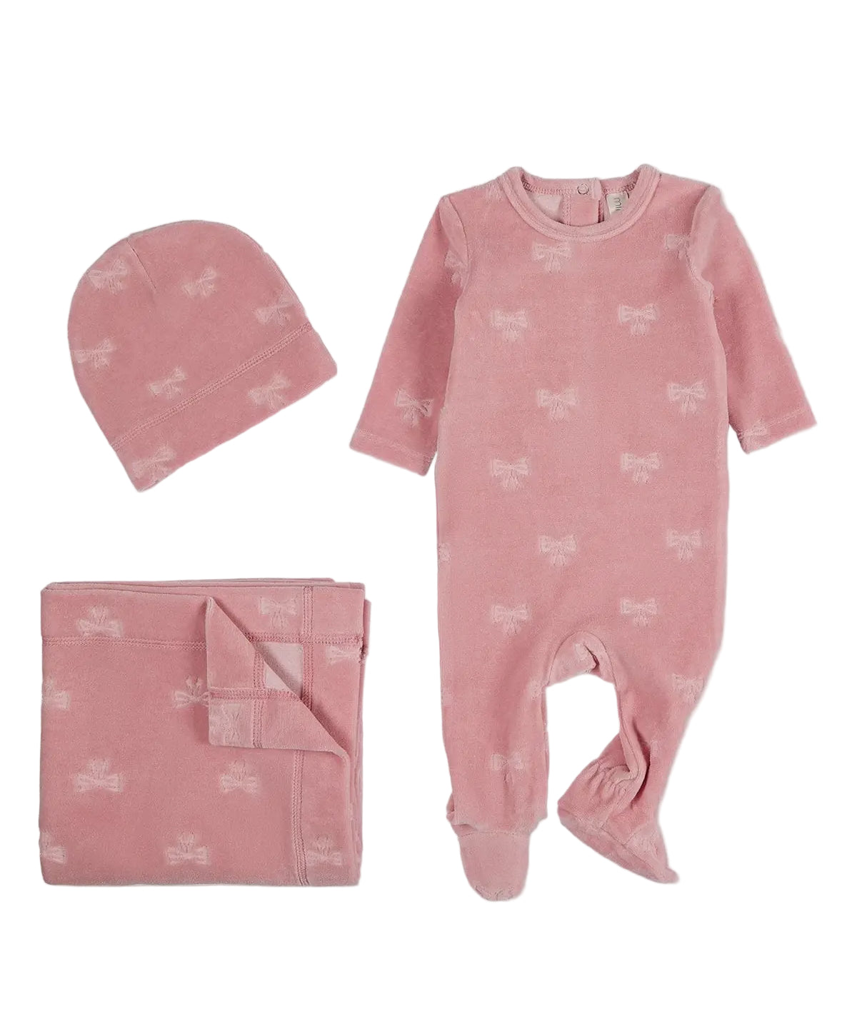 Velvet Bow 3pc Footie set