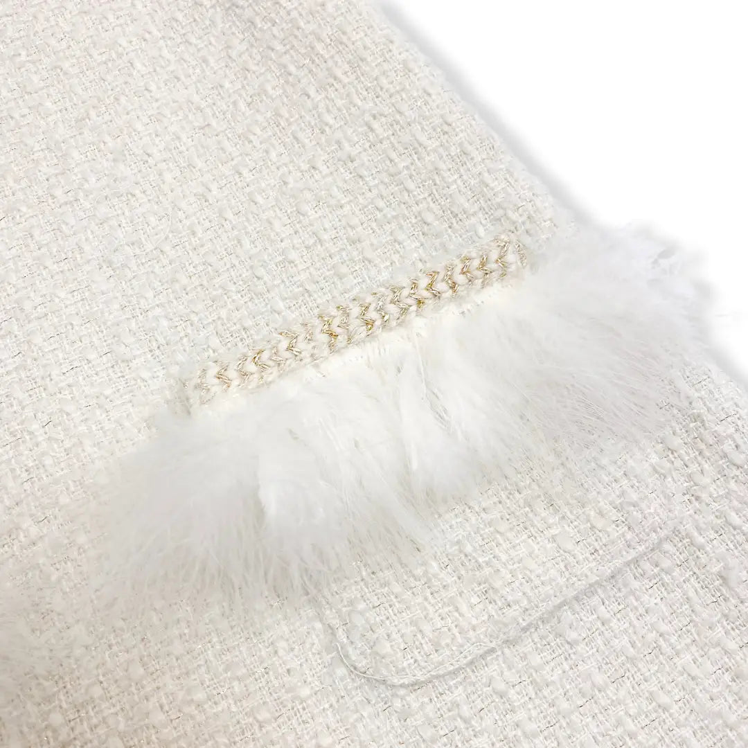 The Sabrina Feather Trim Tweed Mini Dress is your go-to for chic occasions! Made from soft polyester tweed, it features playful feather trim on the pockets and hem, which you can remove for easy washing. Sleeveless and flirty, it’s the perfect mix of fancy and fun for your next event.