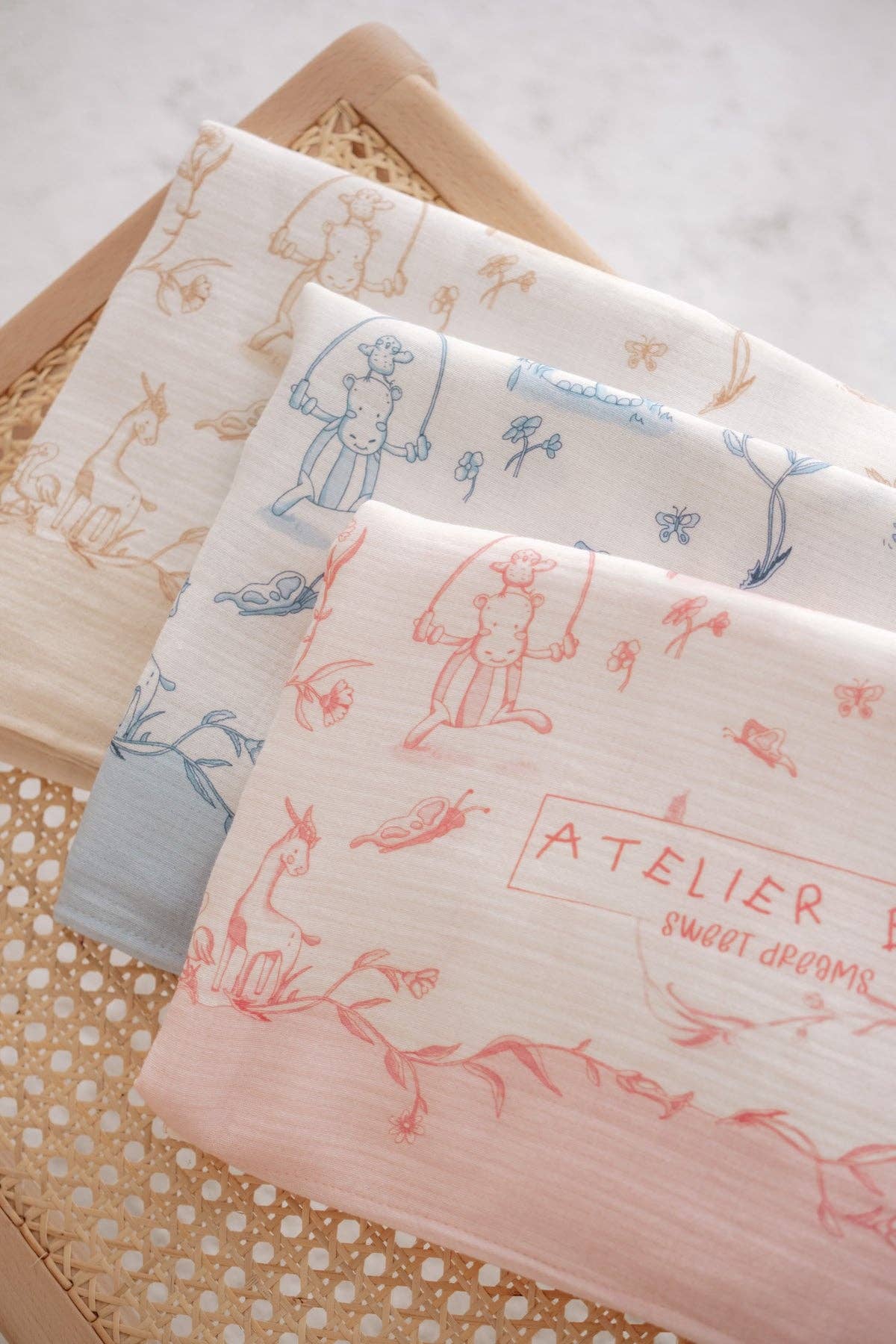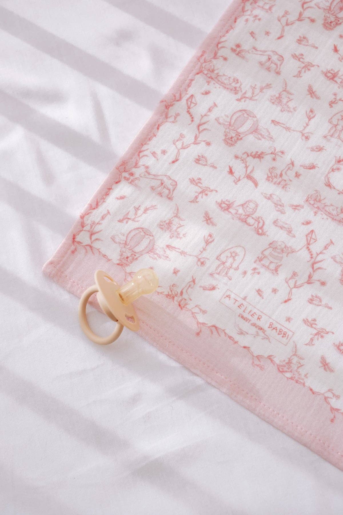 Newborn Bib & Hat Set - Toile De Jouy / Pink