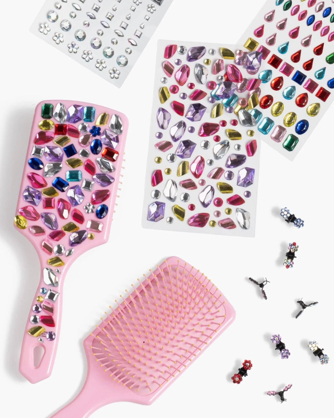 - Includes sparkly gem flower mini clips to complete the look