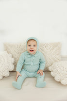 This elegant baby boys' 3-piece set includes a long sleeve jersey onesie with a delicate Peter Pan collar embroidered with a horse, a matching rib knit cardigan with front buttons, and a coordinating knit bonnet. Available in Seabrook and Dark Almond, it’s crafted from soft 98% cotton and 2% spandex for comfort and stretch. Hand wash cold and lay flat to dry to maintain its quality.