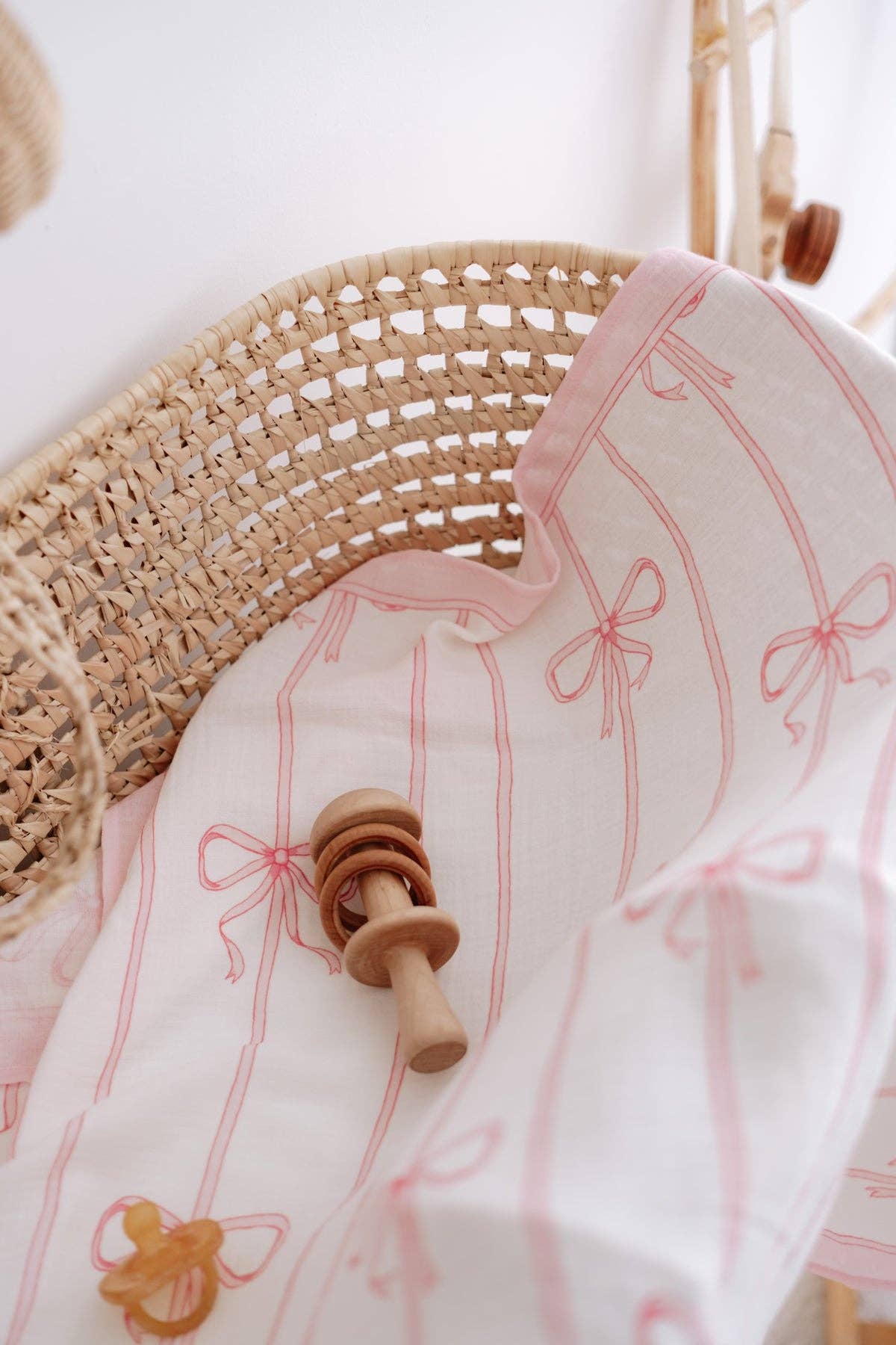 Double-Layer Muslin Blanket - Ribbon/Pink
