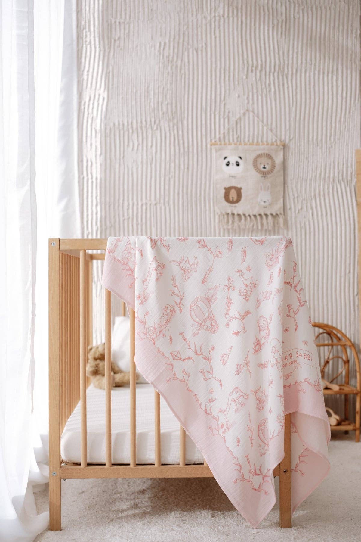 Double-Layer Muslin Blanket - Toile De Jouy/Pink