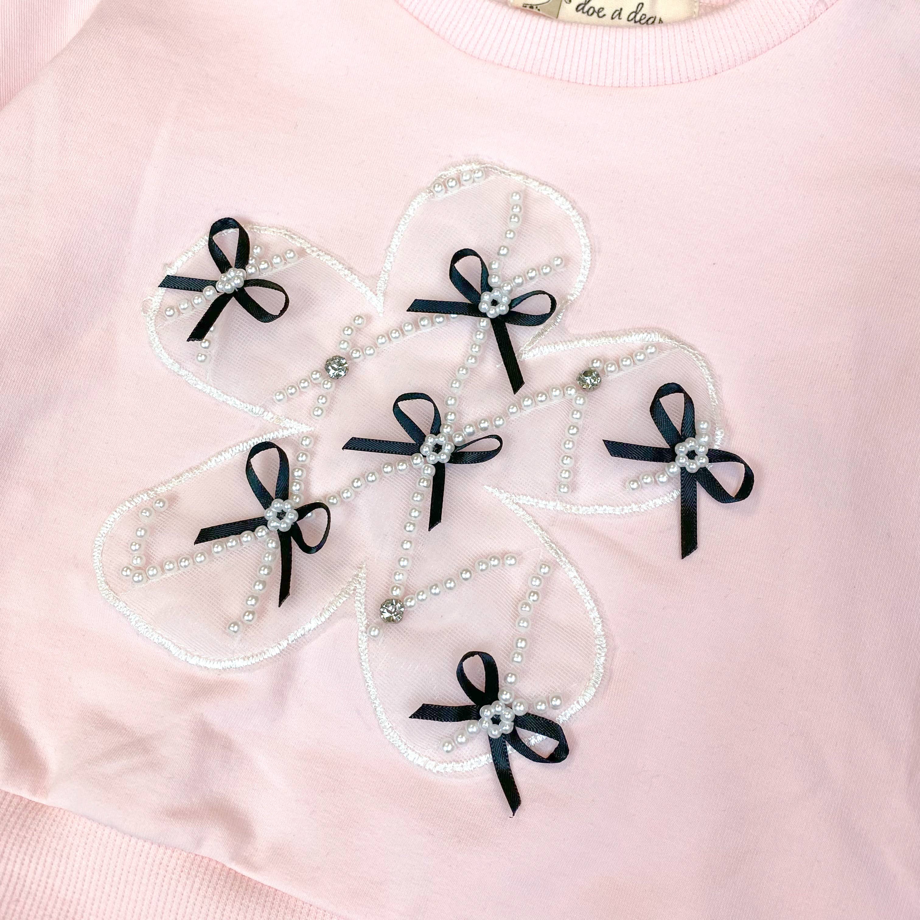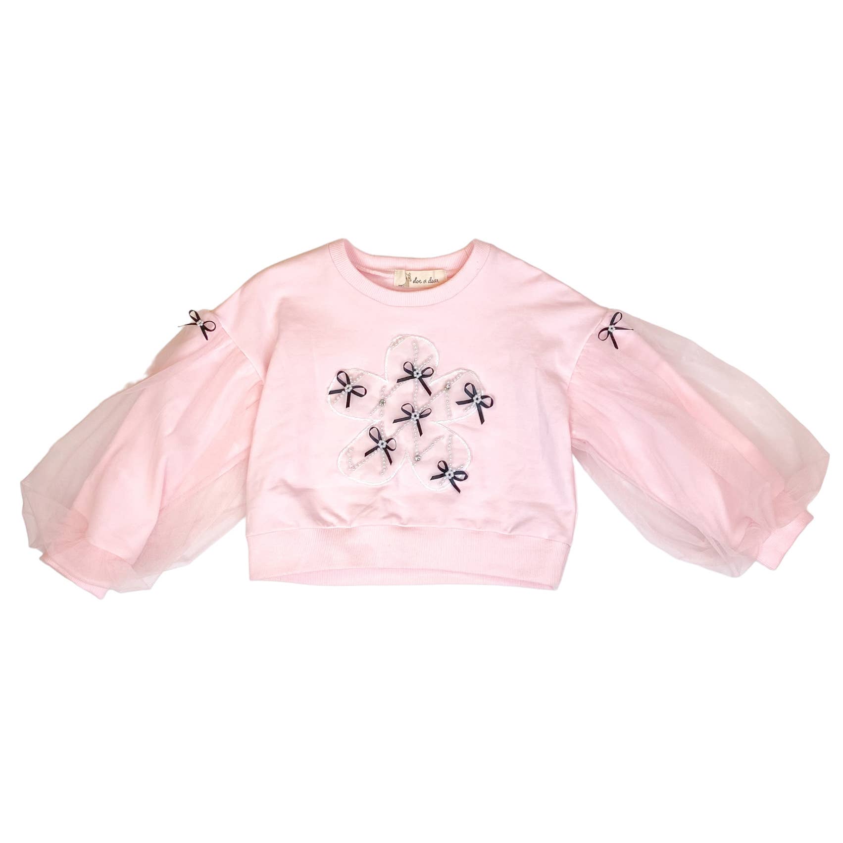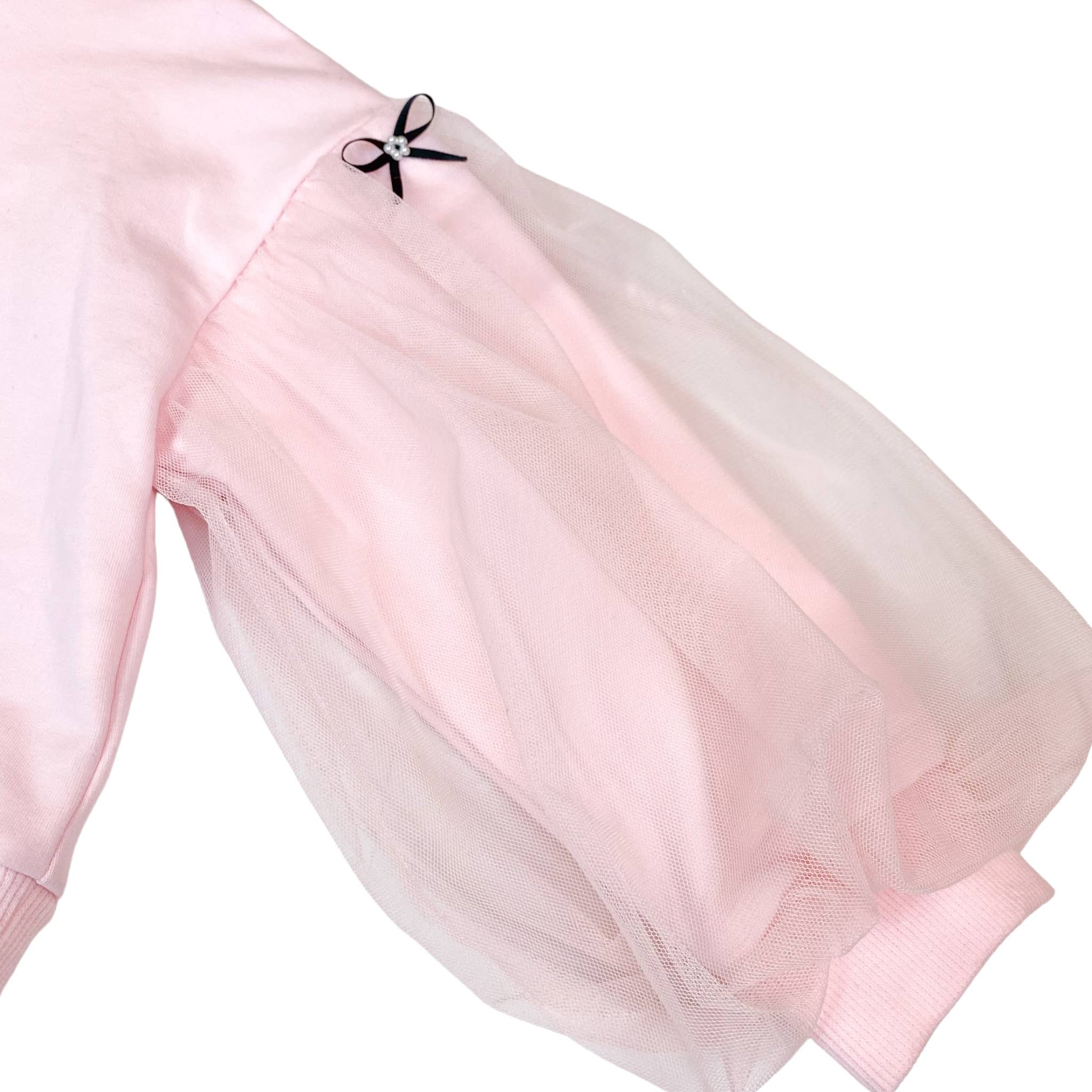Elevate your look with the Sabrina Mesh Sleeve Bow Top, featuring delicate ribbon and pearl accents and graceful wide sleeves. Pair it with the matching skirt, sold separately, for a stunning coordinated outfit.