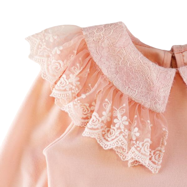 The Alice Lace Collar Top adds a delicate touch of elegance to your little fashionista’s wardrobe. Crafted with a charming lace collar, this top transforms everyday wear into a refined style statement perfect for any occasion.