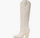 These knee-high women's cowboy boots blend vintage charm with modern elegance. Crafted from premium vegan leather and suede-effect materials, they feature a pointed toe, 3.74-inch chunky heel, and intricate hand-stitched embroidery. With breathable lining and non-slip rubber soles, they offer comfort and durability. Versatile for any season, they elevate outfits from miniskirts to layered jeans, perfect for festivals, nights out, or adding a sophisticated western touch to your wardrobe. Shaft circumference: 30cm.