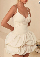 This elegant Jolene Bubble Mini Dress features a high-stretch fabric that offers exceptional comfort and ease of wear. Designed with a sleeveless cut, wrap front, and V-neckline, it flatters every silhouette. The distinctive puffer hem adds a playful Y2K bubble effect, perfect for a chic, girly look. Ideal for stylish women seeking a sophisticated yet fun mini dress.