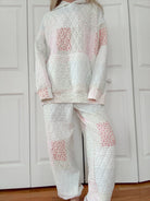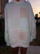 The Meghan Patchwork Hoodie features a lightweight patchwork design that offers both style and comfort. Its oversized unisex fit provides a relaxed silhouette, perfect for layering. Petite wearers should note that sizing up is not recommended, as the hoodie may feel too large. This elegant piece effortlessly combines casual ease with refined detail.