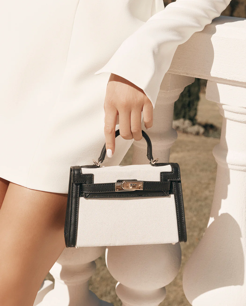 Hariette Handle Bag - Black/Linen