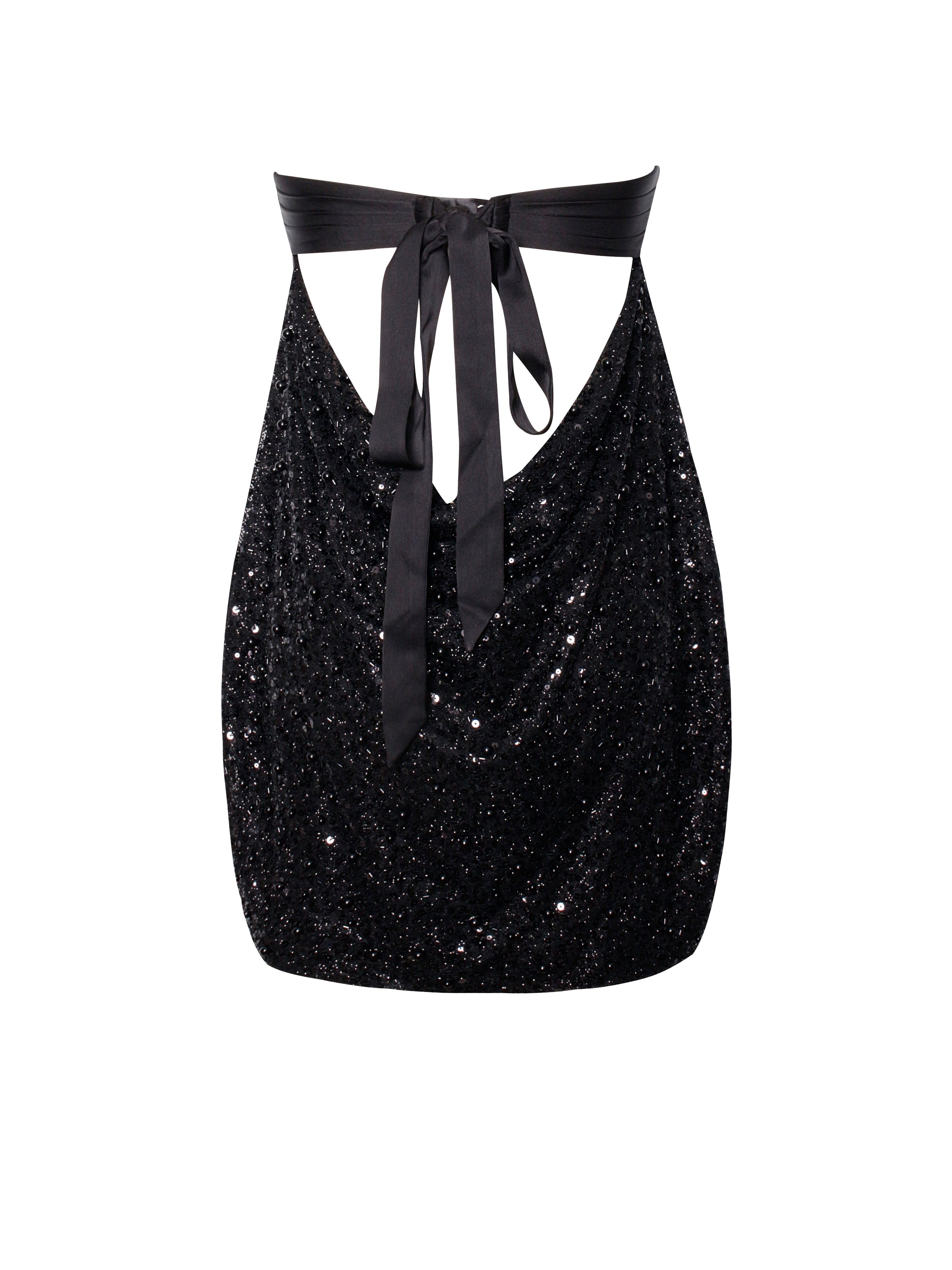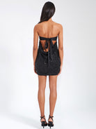 Turn heads this holiday season in the Amelie Open Back Dress—a sultry strapless mini featuring intricate beading that catches the light with every move. The daring tie-back design adds an unexpected flirty touch with a bra hook closure, perfect for NYE celebrations or Christmas Eve glamour. Slip into this little black dress and own the night with confidence and sparkle.