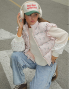 Stay cozy while looking effortlessly chic in our Blush Blossom Bow Puffer Vest. Featuring a delicate pink floral print, feminine ruffle sleeves, and a sweet front bow detail, this vest blends warmth with romantic charm. Perfect for layering over knits or casual tees, it adds a touch of softness and style to any outfit. Pair it with denim for a laid-back look or dress it up for an elevated streetwear vibe.