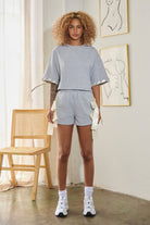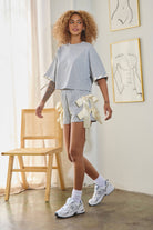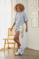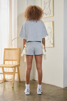 KEYWORDS: SHORTS, FRENCH TERRY, BOW, RIBBON, WIDE, STRETCH WAISTBAND, SHORTS, SUMMER SHORTS, SPRING SHORTS