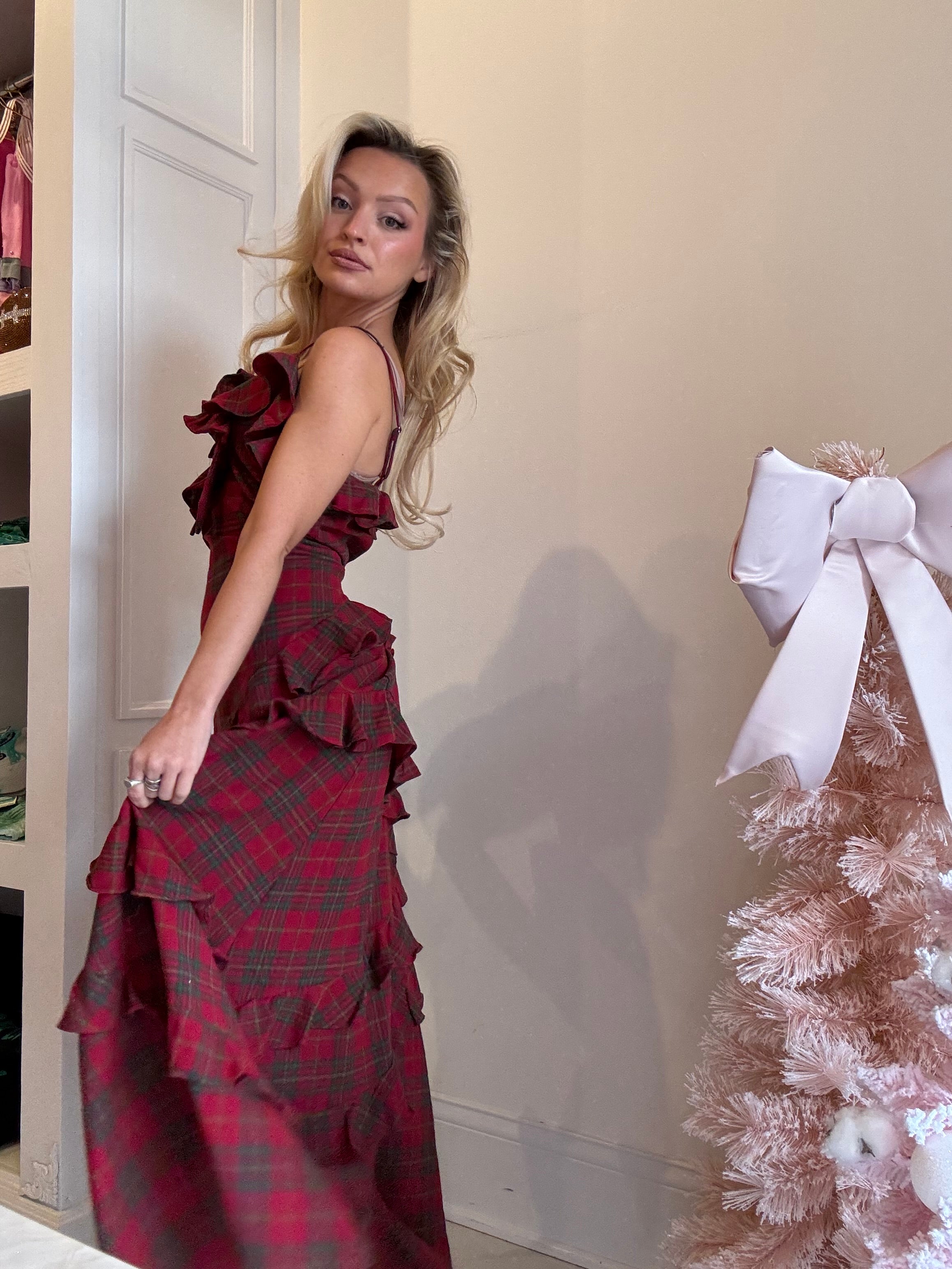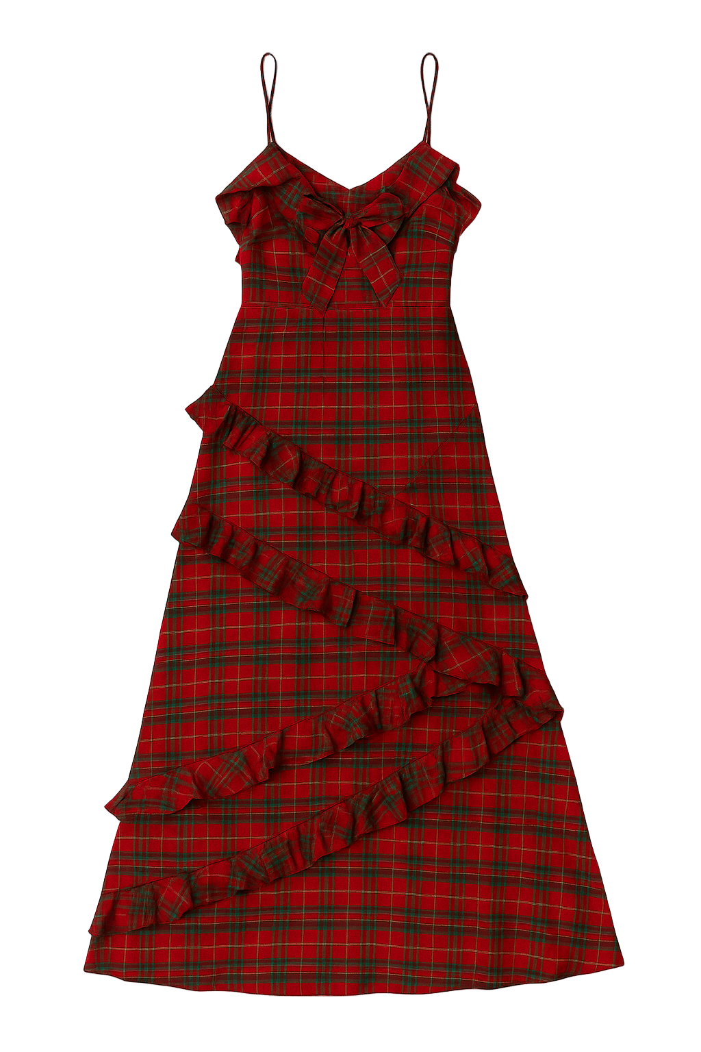 Twirl into the season in this adorable Clara Plaid Ruffle Dress! Featuring a festive holiday plaid print and romantic sweetheart neckline with a charming front bow, this maxi beauty is pure holiday magic. Adjustable spaghetti straps and a relaxed A-line silhouette keep you comfy all day long, while cascading ruffled tiers add playful movement and dimension. Soft, lightweight woven fabric feels dreamy against your skin. Perfect for holiday parties, family gatherings, or any occasion calling for extra sparkle and sass!