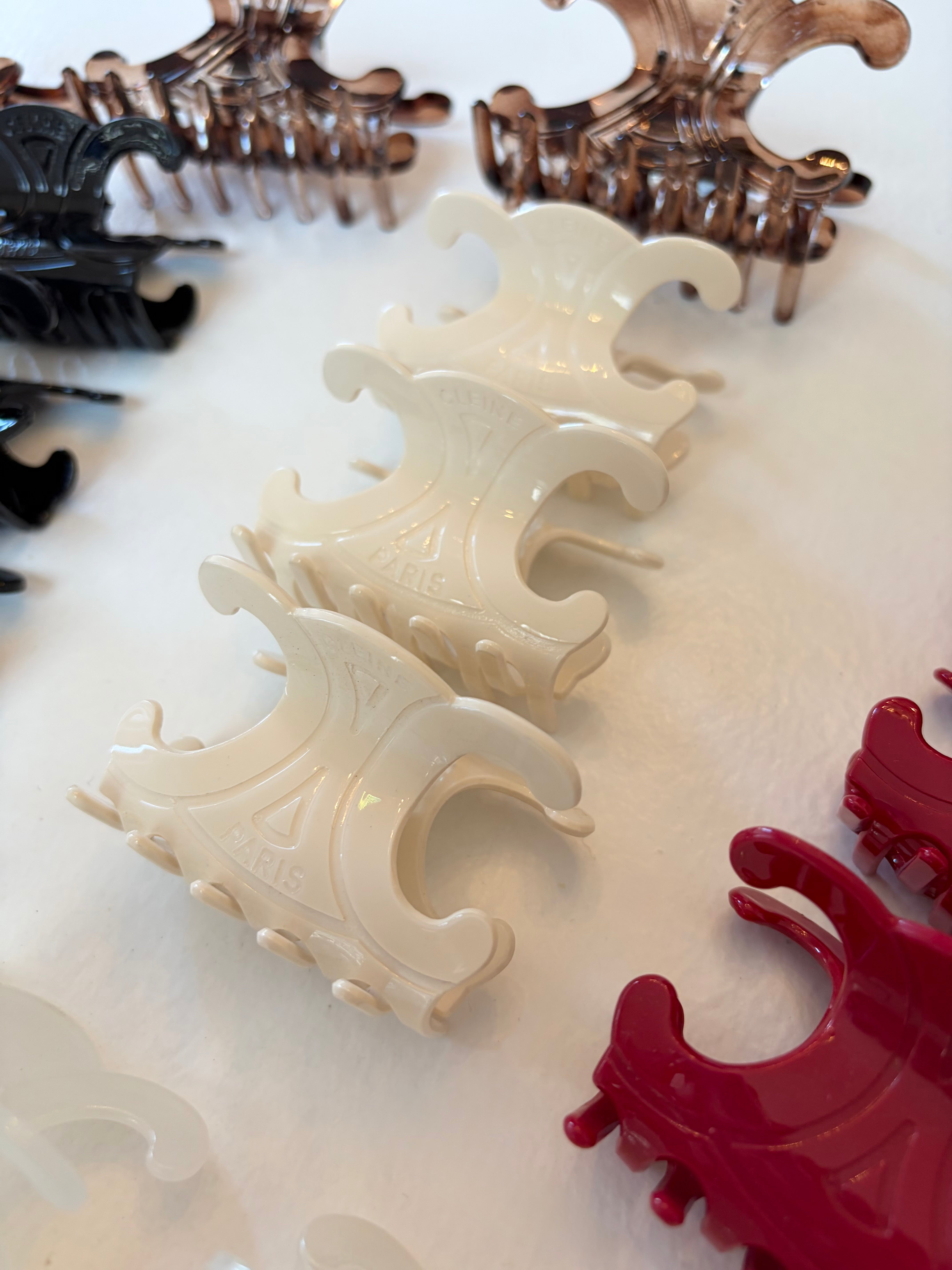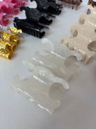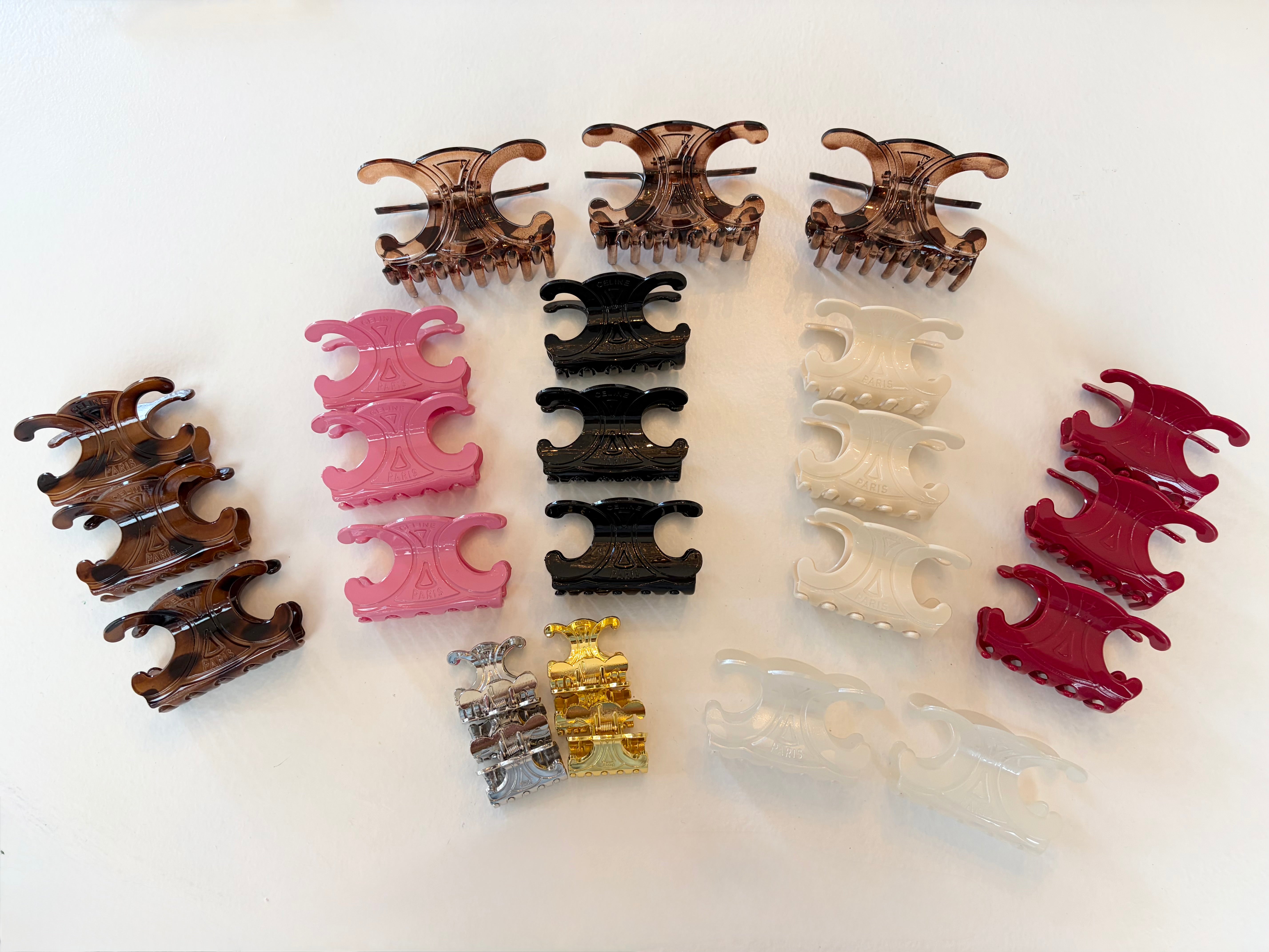 Chic claw clips in a variety of luxe shades—perfect for effortless updos and stylish half-clips. From classic tortoise and jet black to glam metallics, soft pinks, and bold reds, these versatile claws hold securely while adding a pop of color and charm. Lightweight, durable, and sized just right for both adults and kids, they’re the must-have accessory for everyday glam or finishing touches to your look.